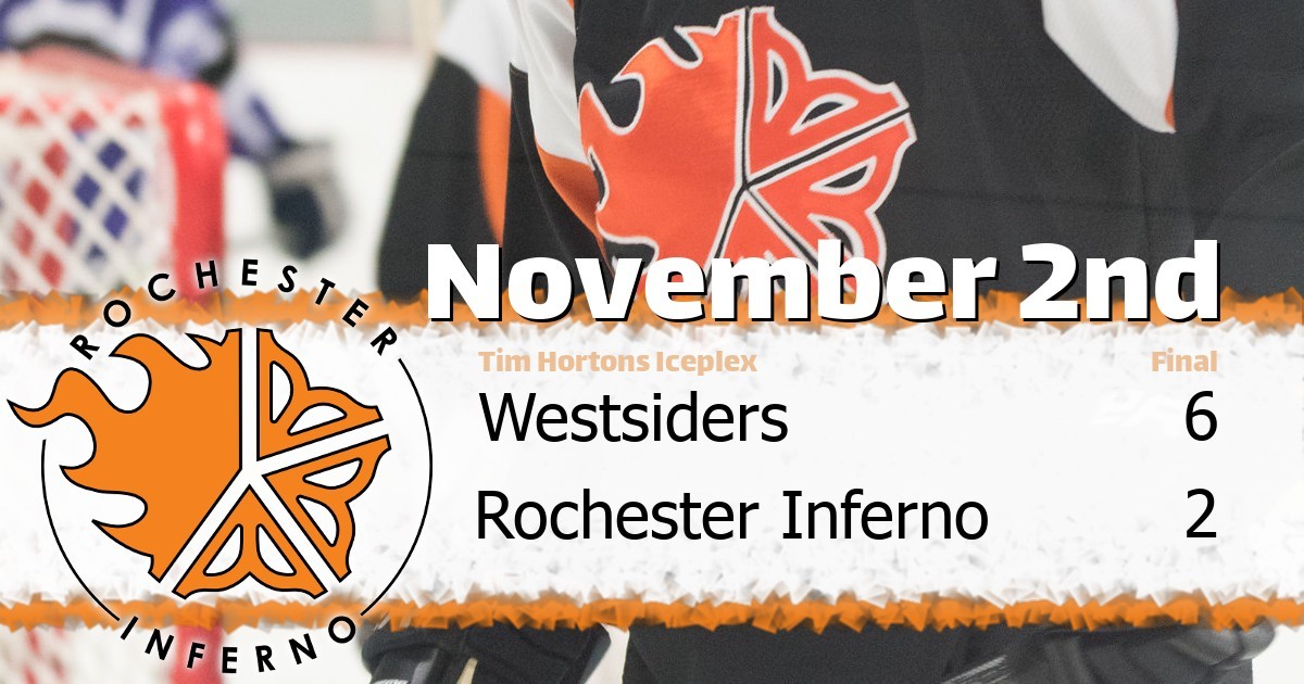 TIM HORTONS ICEPLEX, November 2, 2025 - The visiting Westsiders took on the Rochester Inferno Sunday (Morgan) in a matchup on Sunday. The Westsiders defeated the Inferno 6 to 2 at Tim Hortons Iceplex. This was the 2nd match-up between these two teams, and their last matchup was won by the Westsiders 11-8. The Westsiders lead the series 2-0-0.